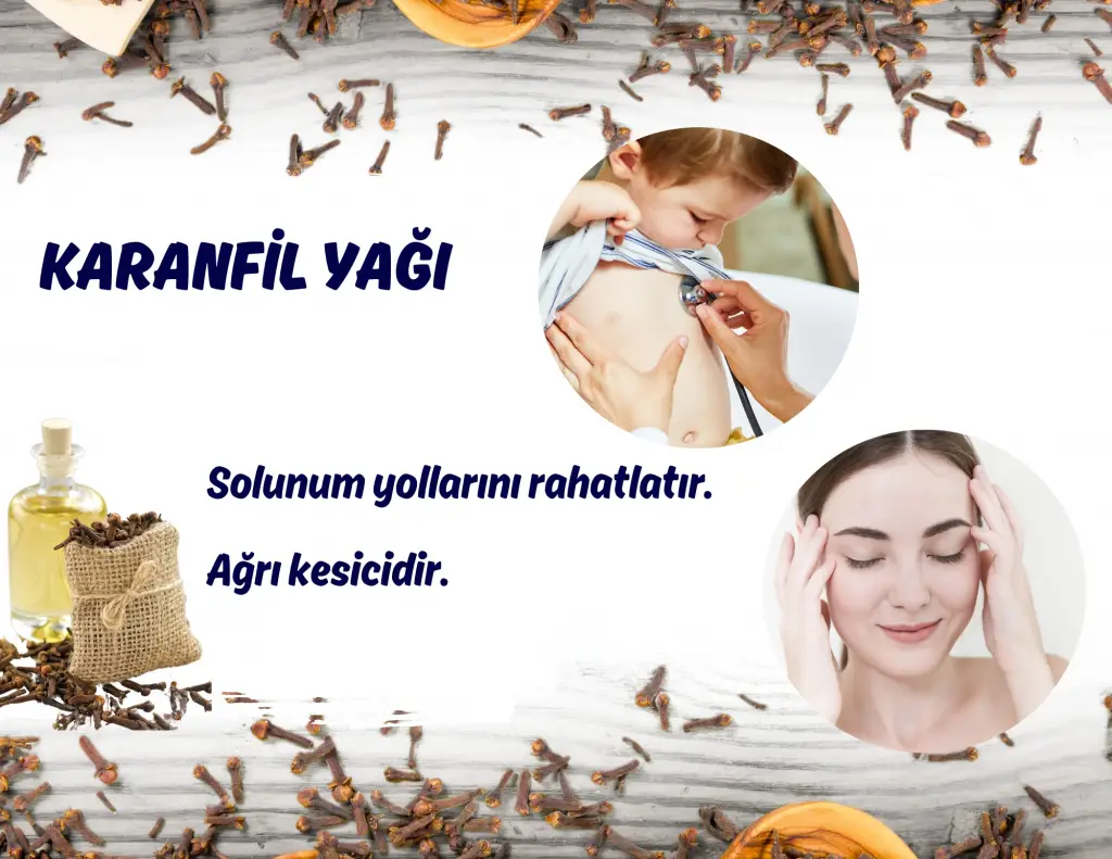 • Solunum Sistemi Sağlığı: Karanfil yağı, buhar inhalasyonu yoluyla solunum sistemine problemlerine yardımcı olabilir.