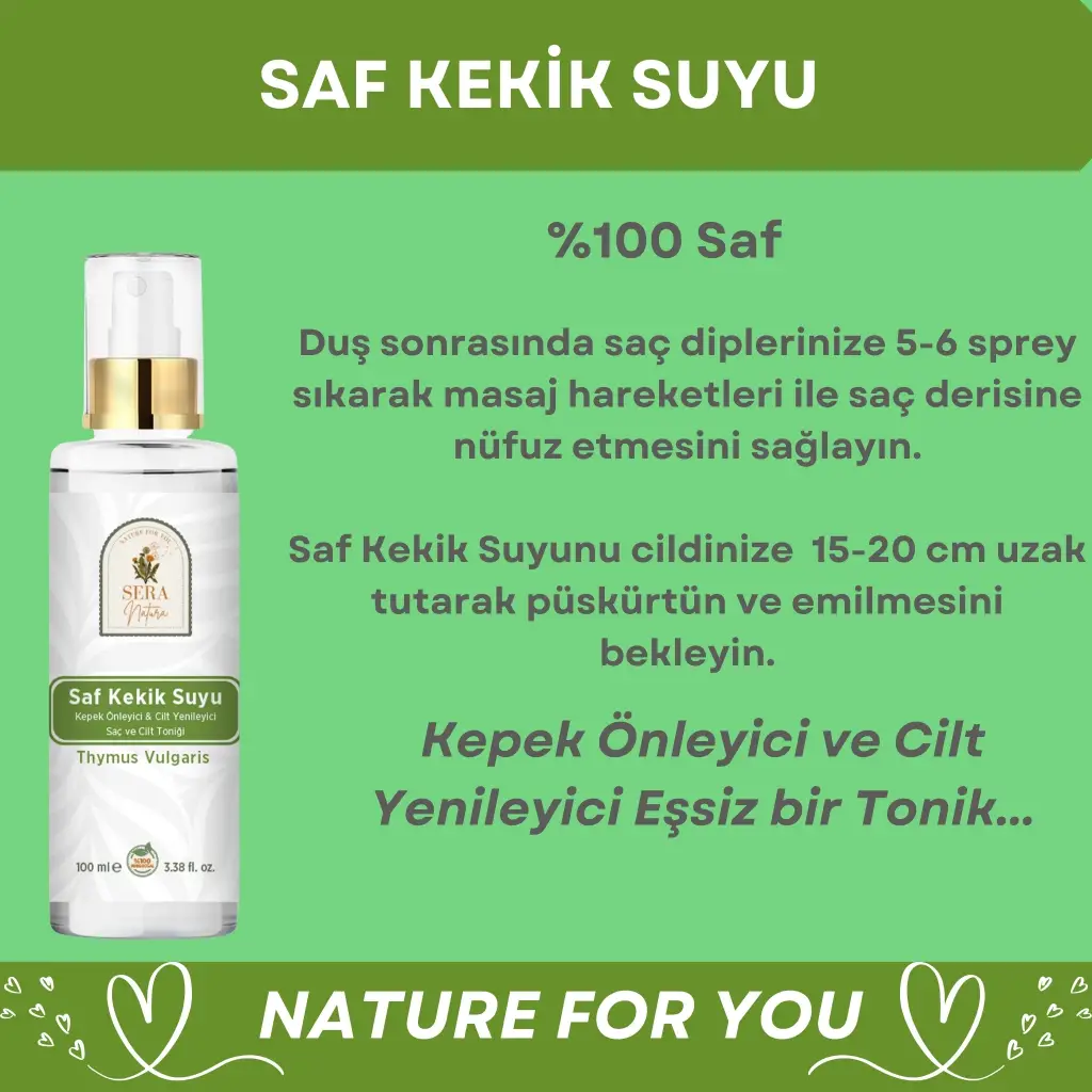 Saf Kekik Suyu Kepek Önleyici & Cilt Yenileyici Saç ve Cilt Toniği 100 ml. %100 Saf