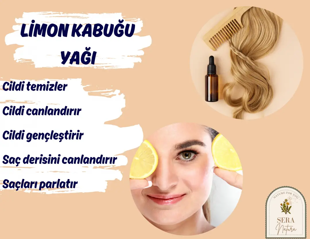 Saç Bakımı: Limon kabuğu uçucu yağı, saç bakımında kullanılır. Saçlara parlaklık kazandırır, saç derisini rahatlatır.