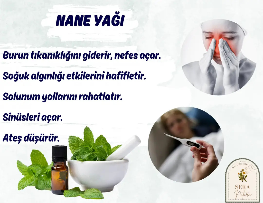 Solunum Yolları Sorunları: Soğuk algınlığı veya sinüzit gibi problemleriniz için nane yağı buharını solumak veya bir buhar makinesine eklemek yardımcı olabilir.