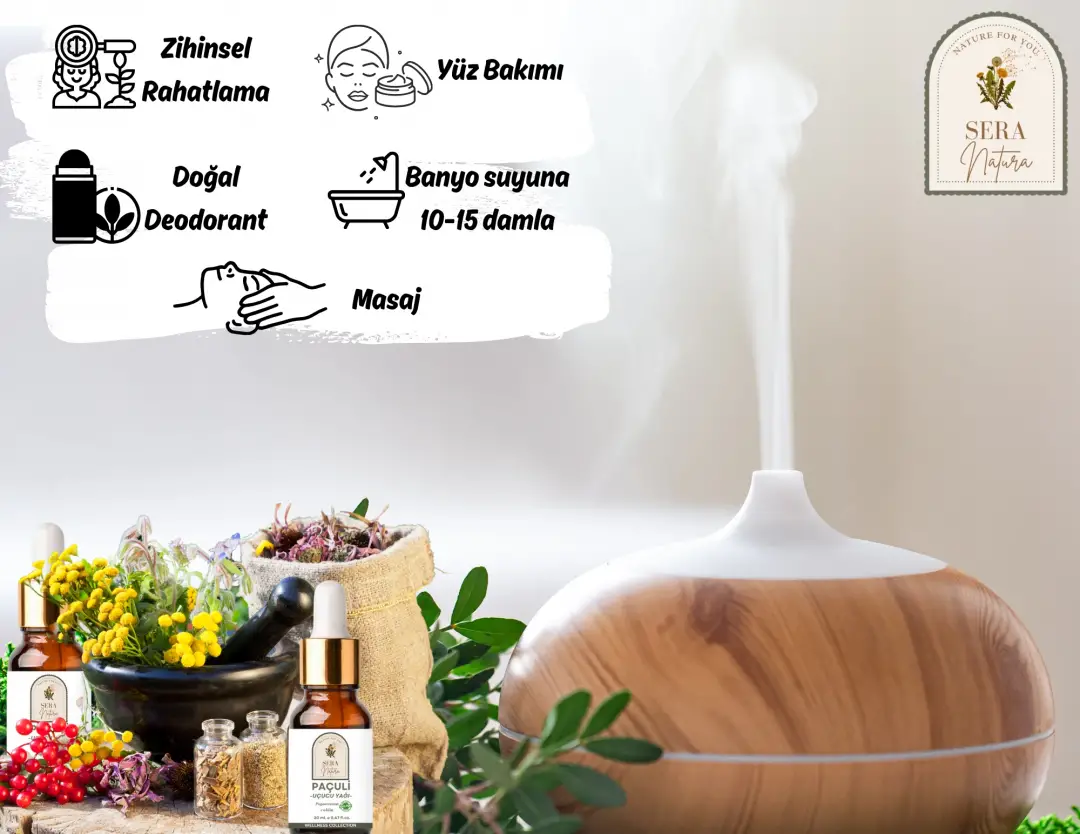 Zihinsel ve Duygusal Denge: Paçuli yağı, zihinsel denge ve duygusal stabilite sağlama amacıyla aromaterapi ve meditasyon uygulamalarında kullanılır.