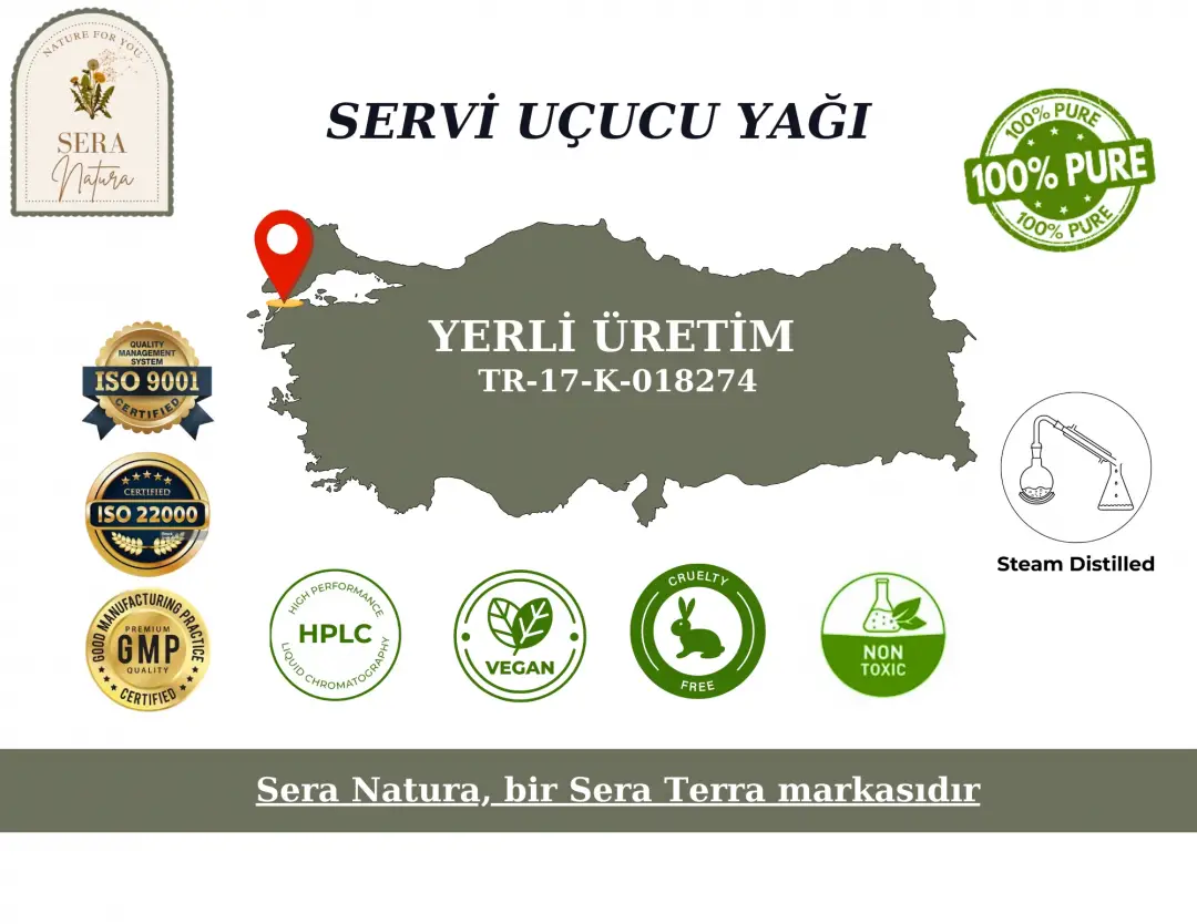 Temizlik Ürünleri: Servi uçucu yağı, ev temizliğinde doğal bir temizlik maddesi olarak kullanılır. Antiseptik özellikleri sayesinde yüzeyleri temizler ve mikropları öldürür.